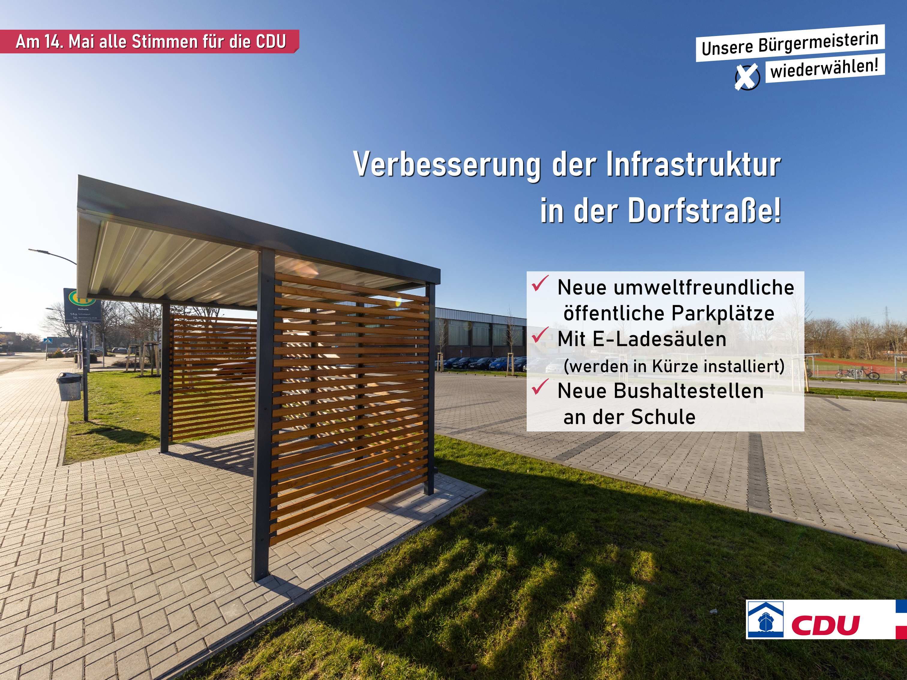 Der Ausbau des ÖPNV ist mit dem Kreis Rendsburg-Eckernförde in unserer Kommune gelungen. Unterschiedliche Buslinien verbinden uns mit den Nachbargemeinden, der Kreisstadt Rendsburg und dem südlichen Kreisgebiet. Auch der Bahnhalt in Schülldorf wird regelmäßig angefahren und verbindet uns mit der Landeshauptstadt Kiel. Für weitere Verbesserungen setzen wir uns ein.