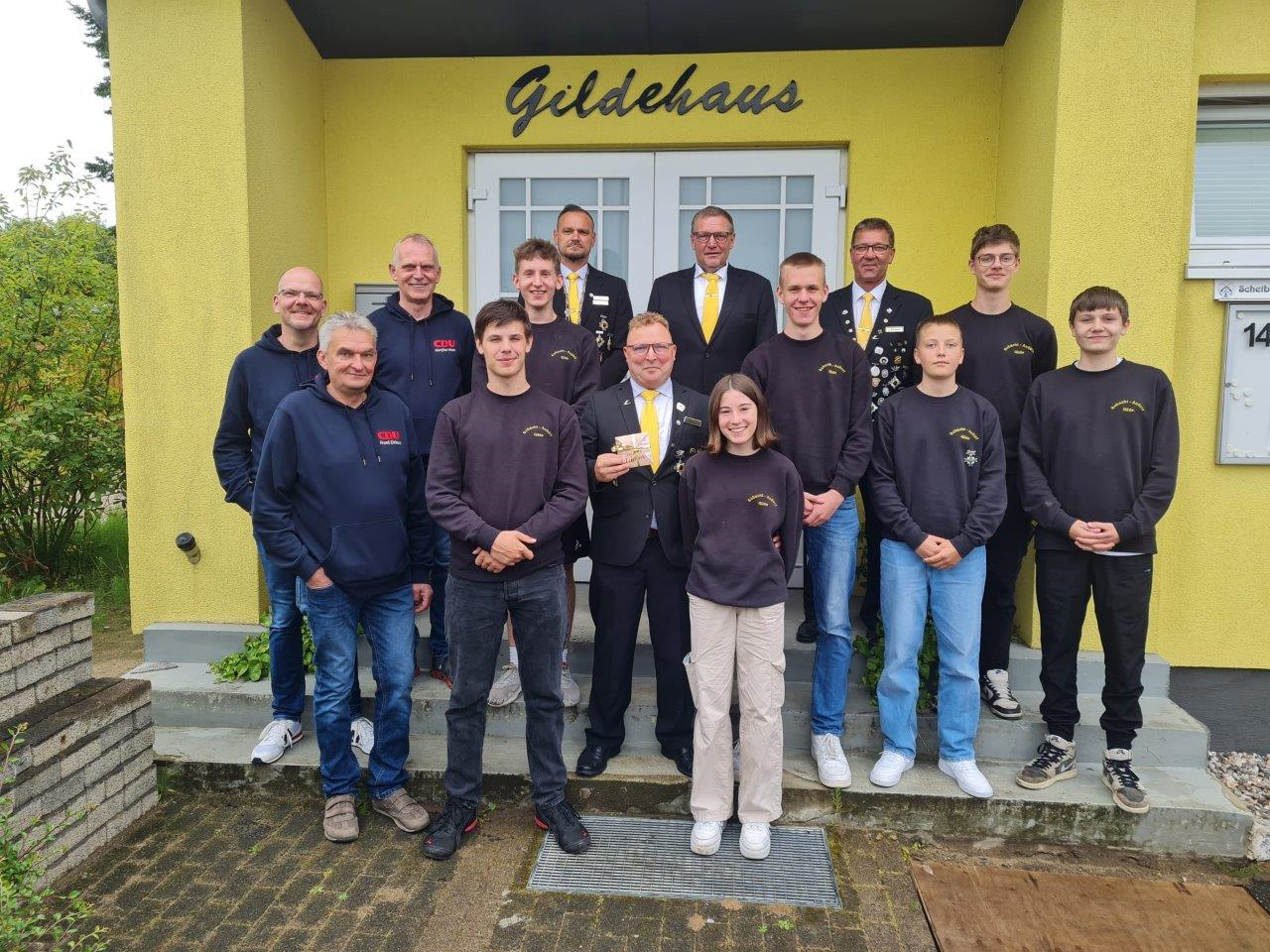 Manfred Peters, Oliver Friedrich und Frank Dekarz übergaben der Gildejugend die Boßel- Strafgelder als Spende in Höhe von 1220 €. Diese Strafgelder kamen bei unserem Neujahrsboßeln mit den Vereinen und Verbänden im Januar 2024 zusammen. Unser Dank geht auch an die Vereine und Verbände aus Schacht-Audorf,