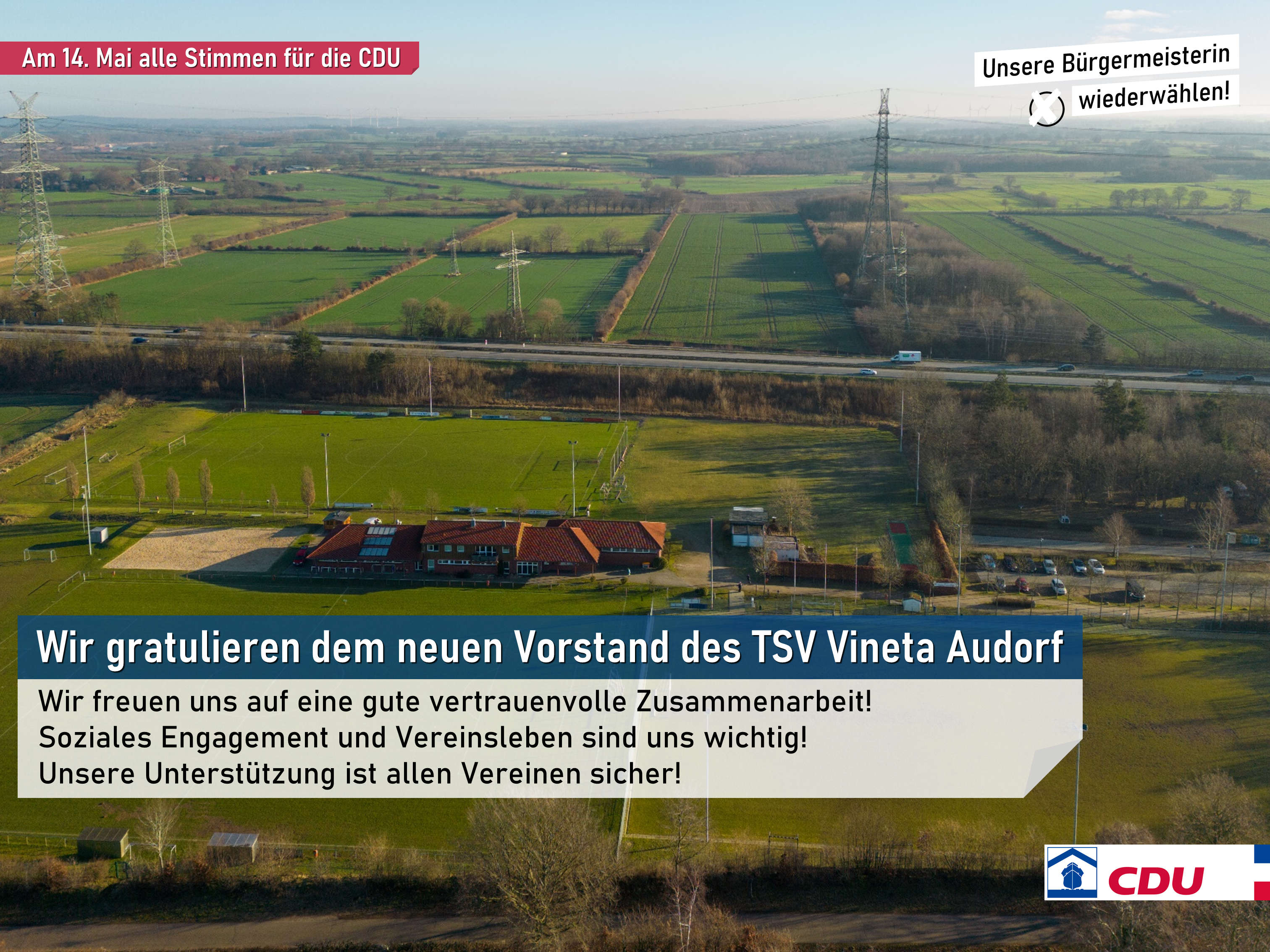 11.04.2023 Wir gratulieren dem neuen Vorstand des TSV Vineta Audorf und freuen uns auf eine vertrauensvolle Zusammenarbeit! Empfehlen Sie uns!Bei Facebook teilen Bei Twitter (X) teilen Bei Whatsapp teilen Diese Seite drucken Diese Seite einem Freund schicken