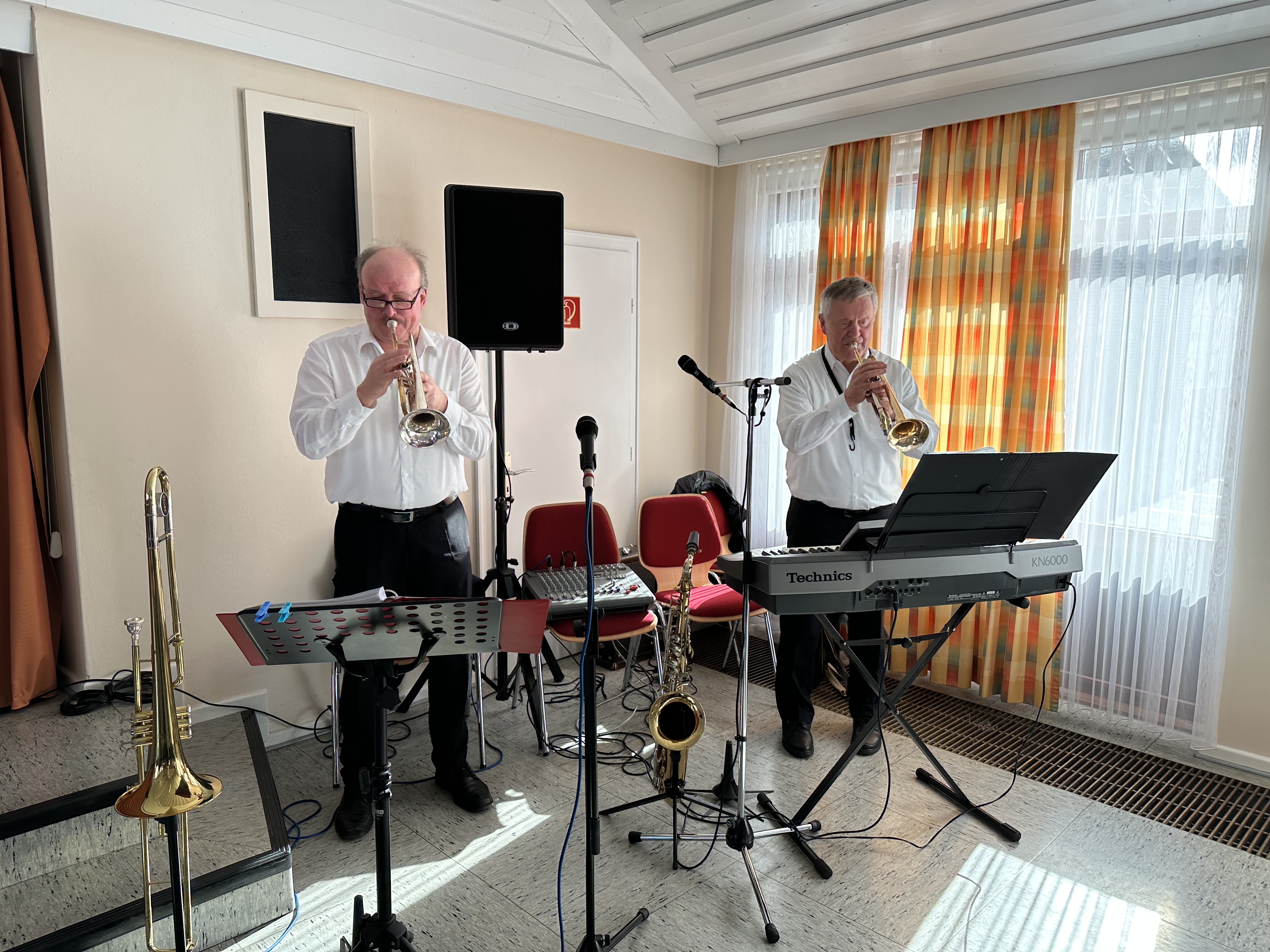 Das Musiker-Duo Jens und Peter aus Hohn brachte die Gesellschaft in Schwung: Es wurde mitgeklatscht und mitgesungen. Zwischendurch brachte der Plattsnacker Heiner Evers mit seinen selbstgeschriebenen Geschichten und Anekdoten immer wieder alle zum Lachen.