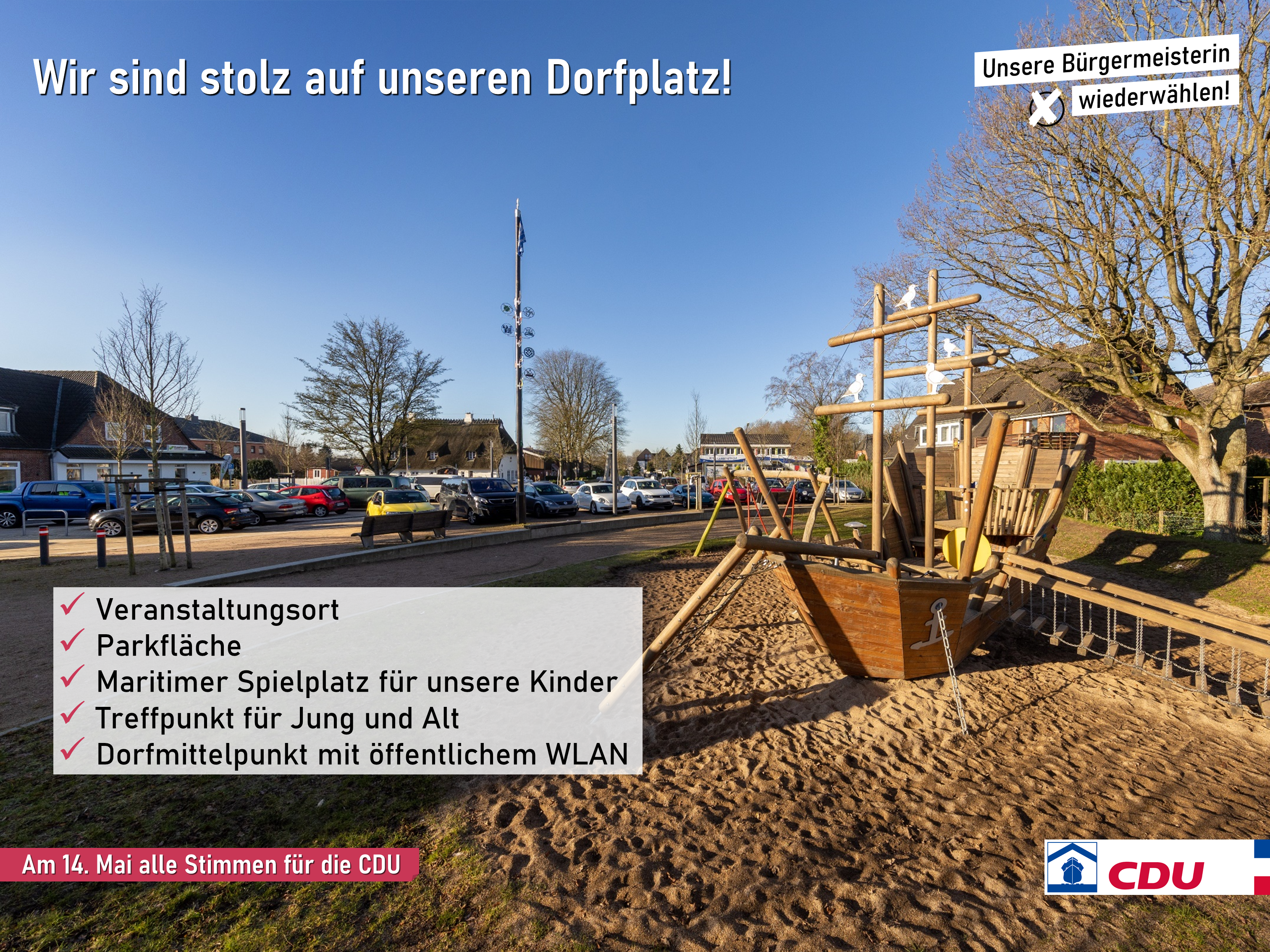 Unser neuer Dorfplatz entwickelt sich zum festen Treffpunkt. Corona-bedingt konnte eine offizielle Einweihung nicht stattfinden. Bereits seit 2022 finden hier nun gemeindliche Veranstaltungen statt. Das Angebot wollen wir ausweiten, auch ein Wochenmarkt ist geplant. Grundsätzlich steht der Dorfplatz weiterhin als Parkraum zur Verfügung.